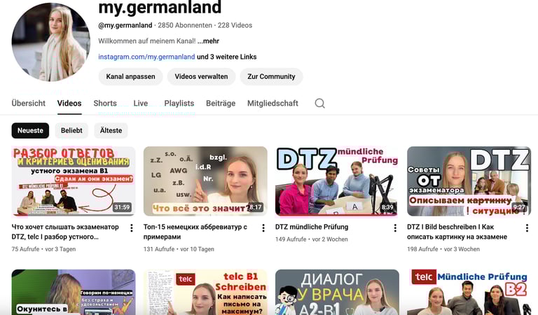 На моем YouTube-канале вы можете найти уже сотни видео о немецком языке, его грамматике и сдаче экзамена по немецкому.